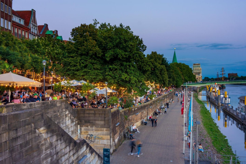 Bremen’in şehir merkezi, özellikle akşam saatlerinde oldukça canlıdır. Schlachte bölgesi (nehir kenarı), öğrencilerin sıkça vakit geçirdiği alanlardan biridir. Burada kafeler, restoranlar ve barlar bulunur.